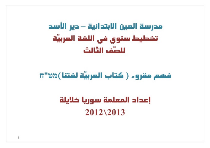 التخطيط السنوي لكتاب العربية لغتنا للثالث موقع اللغة العربية
