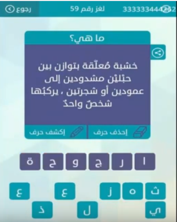 خشبة معلقة بتوازن بين حبلين مشدودين الى عمودين وصلة لغز25