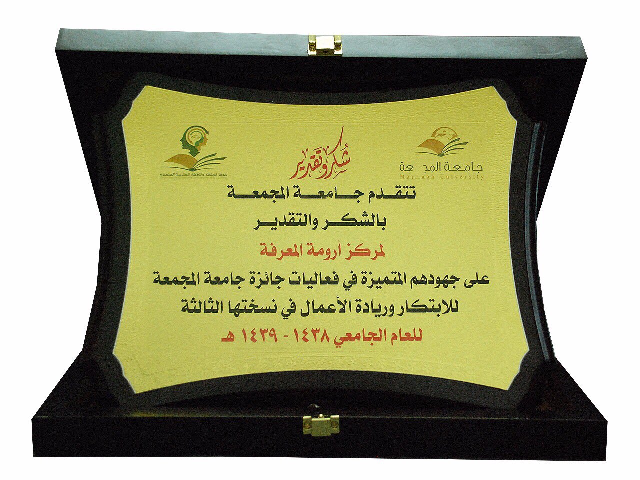 أرومة المعرفة On Twitter درع شكر وتقدير مقدم من جامعةالمجمعة الى